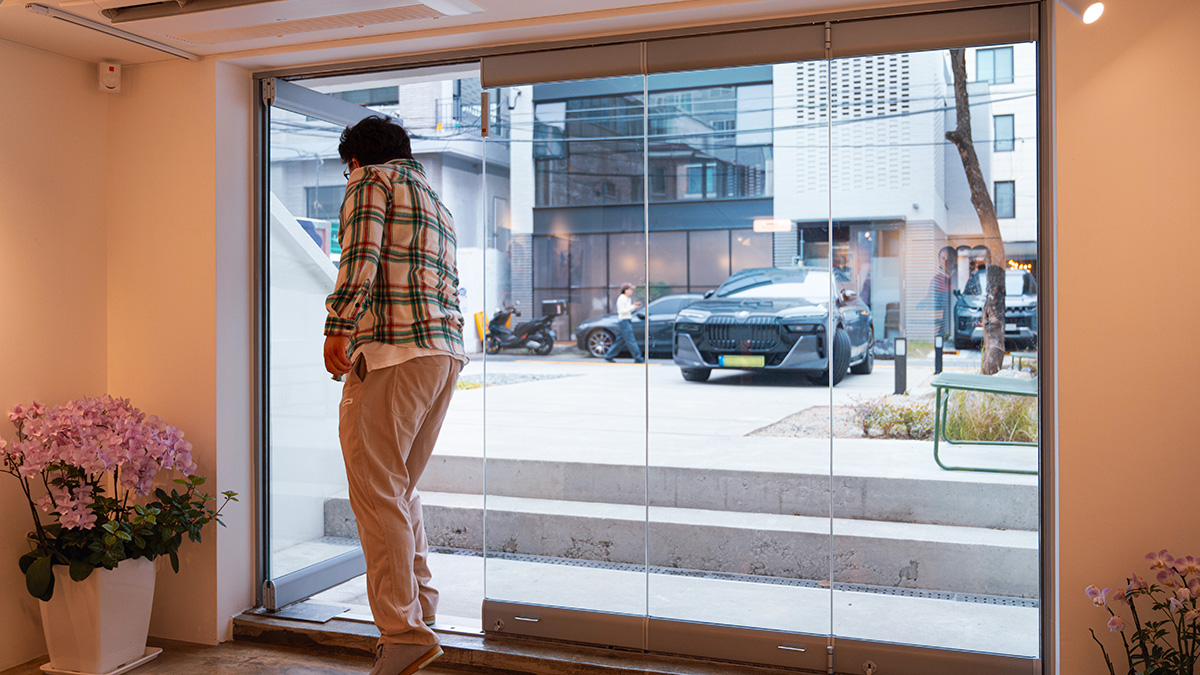 연남동 TRADHAUS 쇼룸, 트렌디한 공간을 완성한 글라스폴딩도어 시공 사례