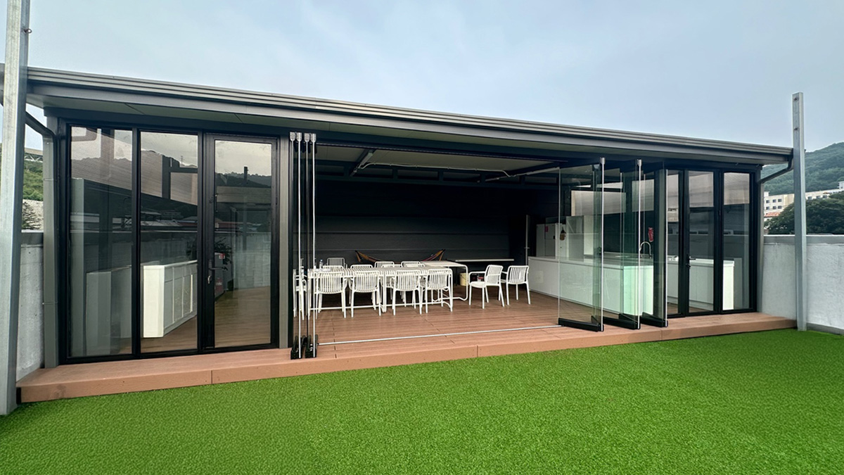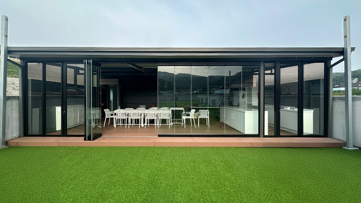 양개형 글라스폴딩도어로 완성한 유연한 공간 분리